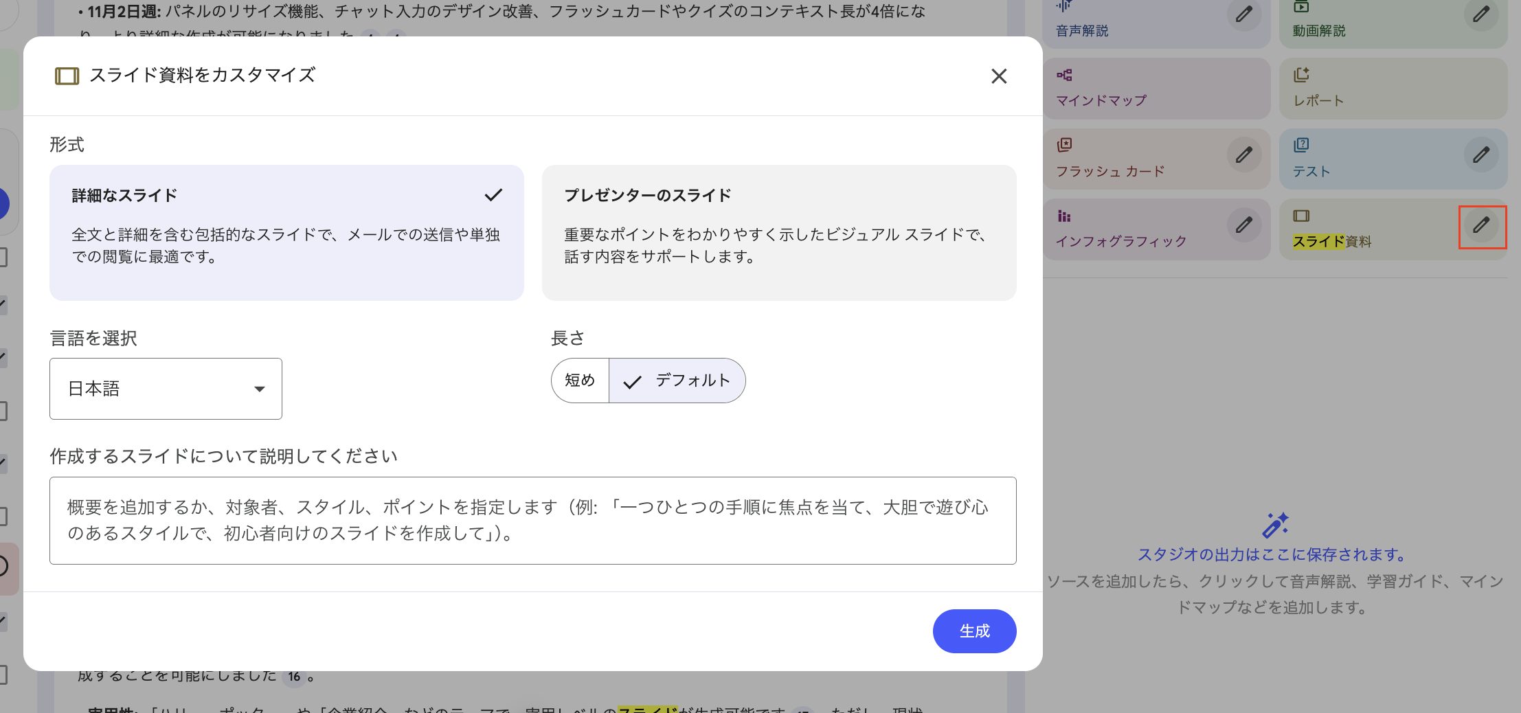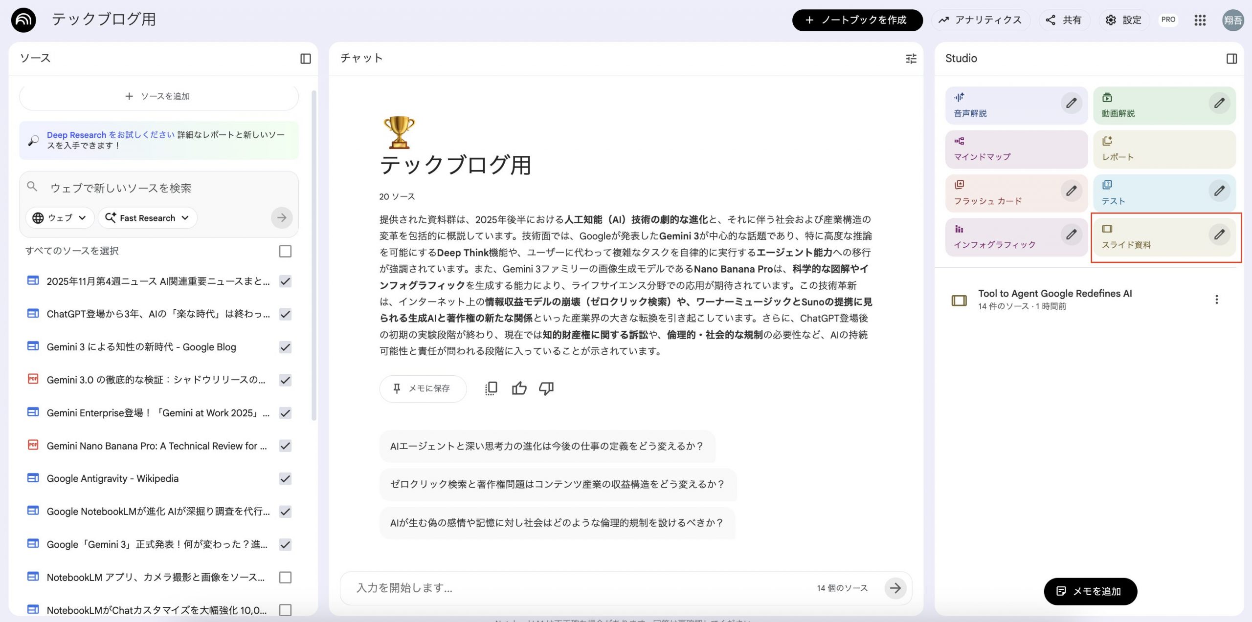 11月24日週:スライド作成機能とインフォグラフィック機能(Nano Banana Pro搭載)が登場しました。これらのアップデートは本当にえぐいですね。