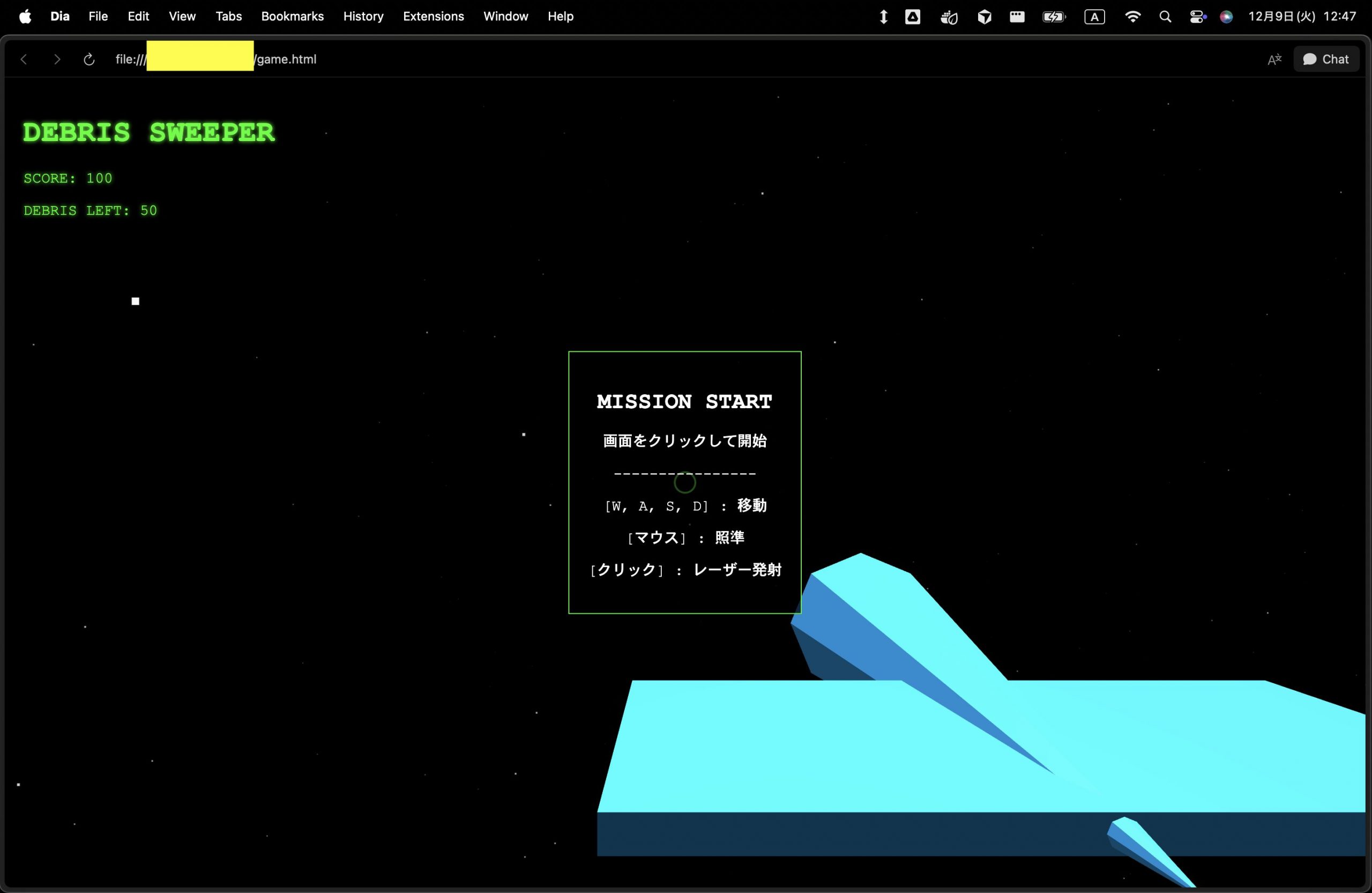 これまでに作成したgame.htmlが見つかりましたね!それをダブルクリックしたらゲーム開始です!