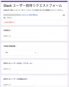 社内ポータルからGoogleフォームを使って依頼・申請する流れが標準としているので、まずはSlackで個別依頼や確認する流れが減らせられることをゴールと設定します。