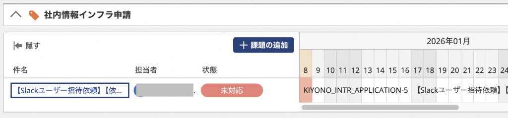 | 担当者 | 1名しか選択できないのでいったん決め打ちで |