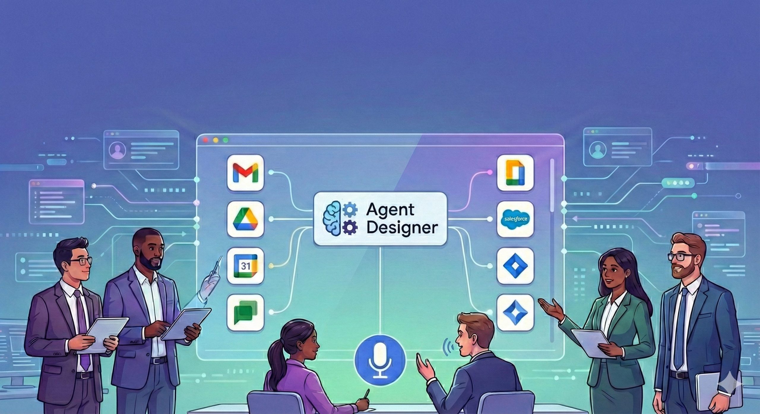 Agent Designerを使えば、プログラミングの知識がなくても業務を自動化するAIエージェントを構築できます。Google Workspaceや外部サービスとの連携により、複雑なワークフローも自動化可能です。