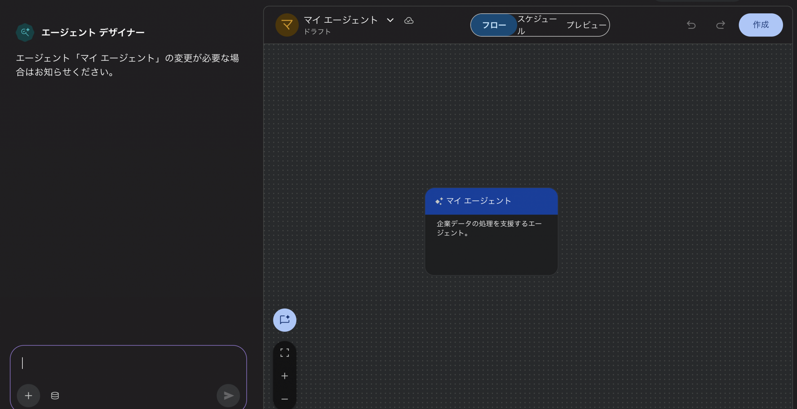 Agent Designerは、ビジネスユーザーが自分でAIエージェントを作成できる統合開発環境です。